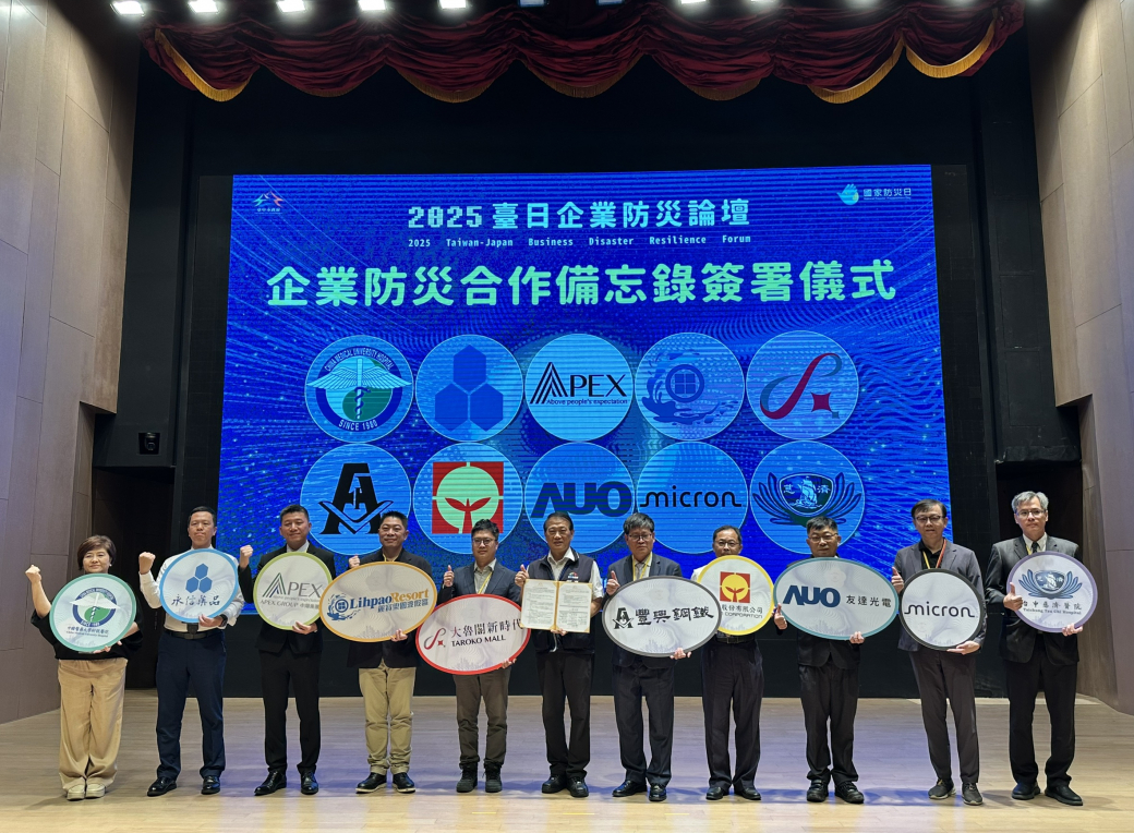 台中市政府今(19)日於經濟部台中軟體園區大里藝術廣場與逢甲大學合作辦理「2025台日企業防災論壇」,由副秘書長張大春主持開幕,並進行「企業防災合作備忘錄」簽署儀式,展現市府與企業攜手合作、強化防災治理的決心。