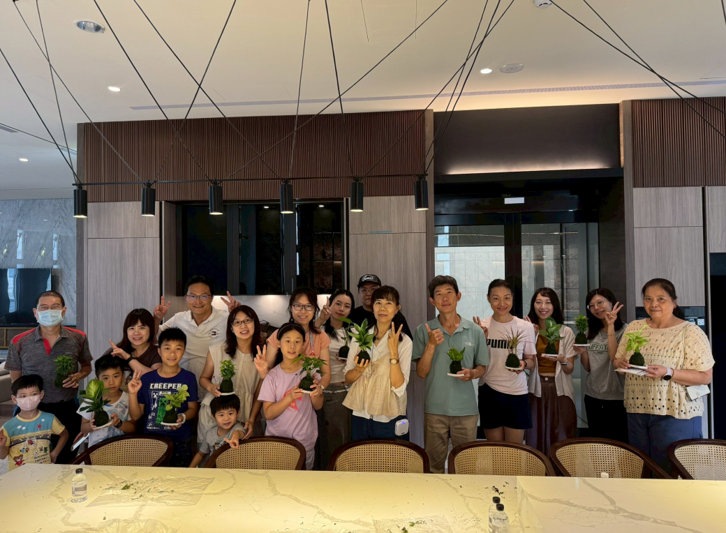 一樓公設內,插畫家為住戶即席創作Q版似顏繪,筆下勾勒出全家福的幸福笑顏,成為佳節最獨特的紀念。同步於二樓展開的苔球手作,則在園藝老師帶領下,大小朋友親手將綠意塑成「掌上森林」,現場洋溢著手作的成就感與鄰里交流的熱絡氣氛。